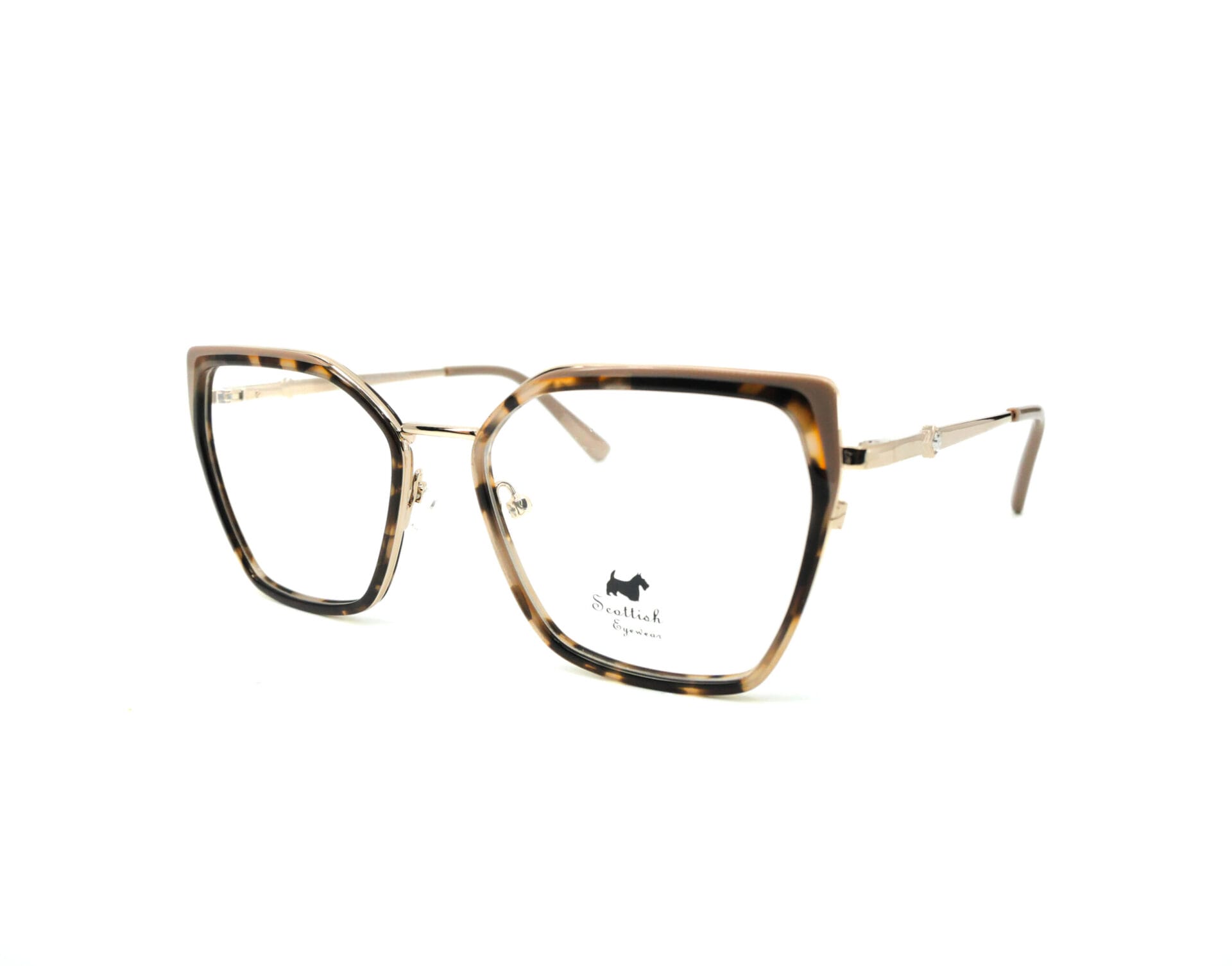 El logo de Scottish Eyewear, visible en una lente, es sinónimo de calidad y buen gusto. Este modelo es ideal para mujeres que buscan una opción elegante y contemporánea para sus gafas diarias.